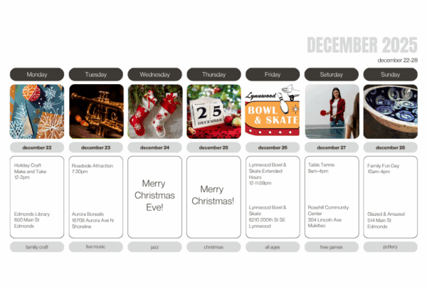 Let us connect you to the daily local events happening at the small businesses in Edmonds and the surrounding areas!