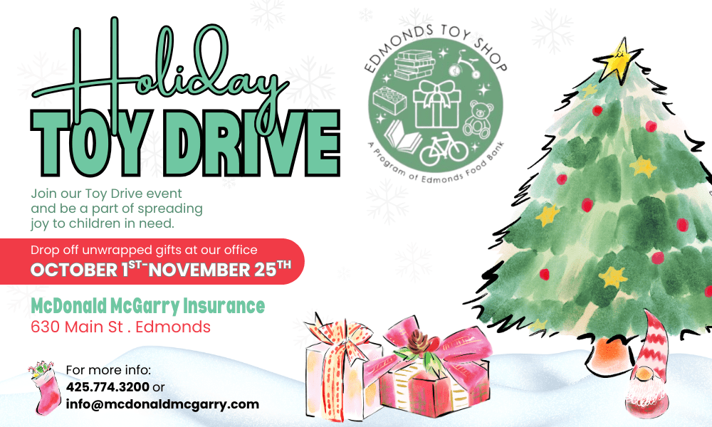 This holiday season, McDonald McGarry is once again partnering with Edmonds Food Bank and hosting a toy drive for Edmonds Toy Shop. We will be collecting new toys and books for ages birth to 9 years old. Swing by our office from October 1st through November 25th to drop off unwrapped gifts for Edmonds Toy Shop! Edmonds Toy Shop will also be taking monetary donations to go towards gift card purchases for kids ages 10-17. Please visit the link below to make a monetary donation: